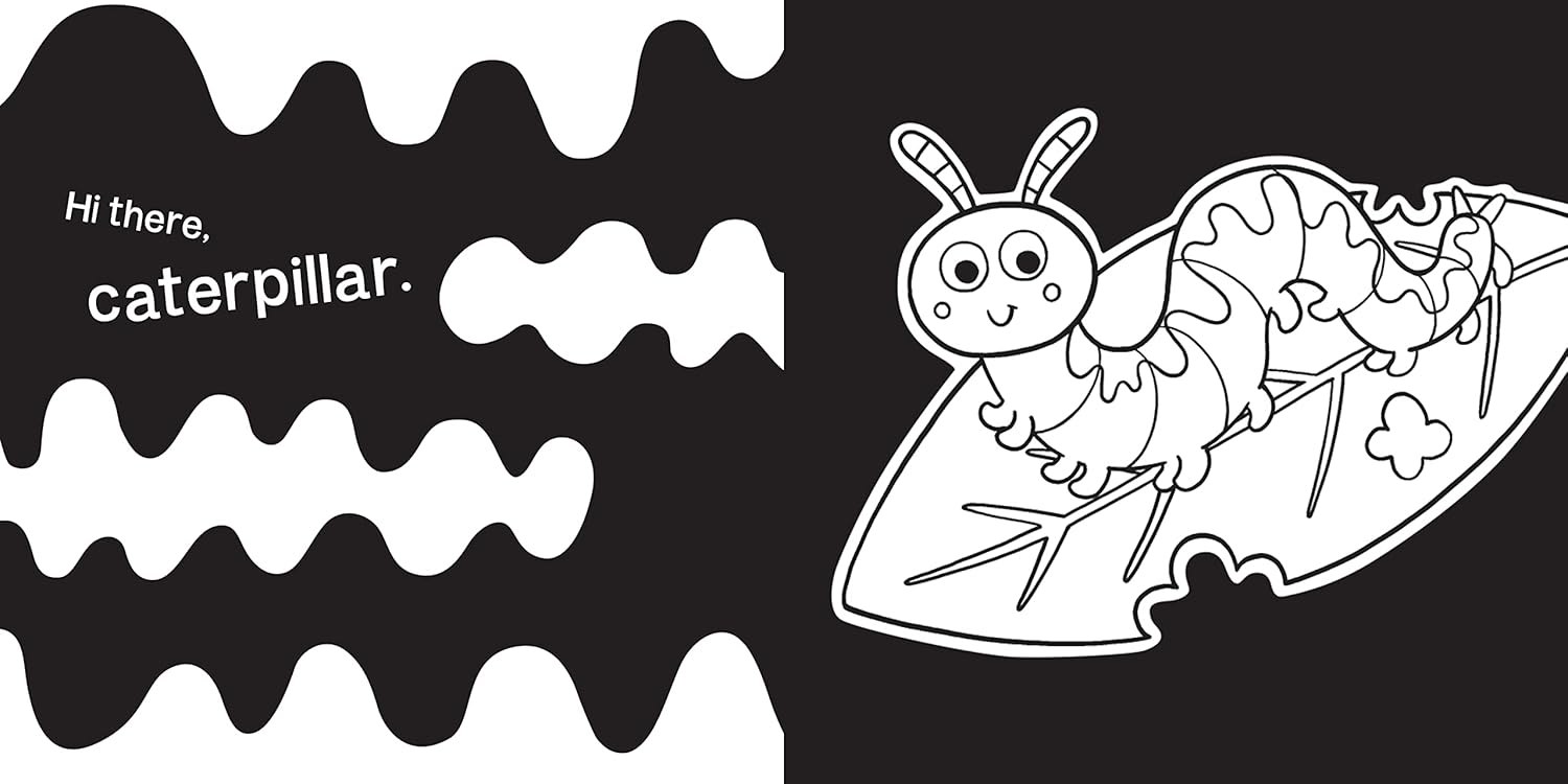 Newborns cannot fully recognize colors, so the sharp contrast between black and white patterns and illustrations allows babies to follow along and make connections to the real world, an important building block for communication skills.
