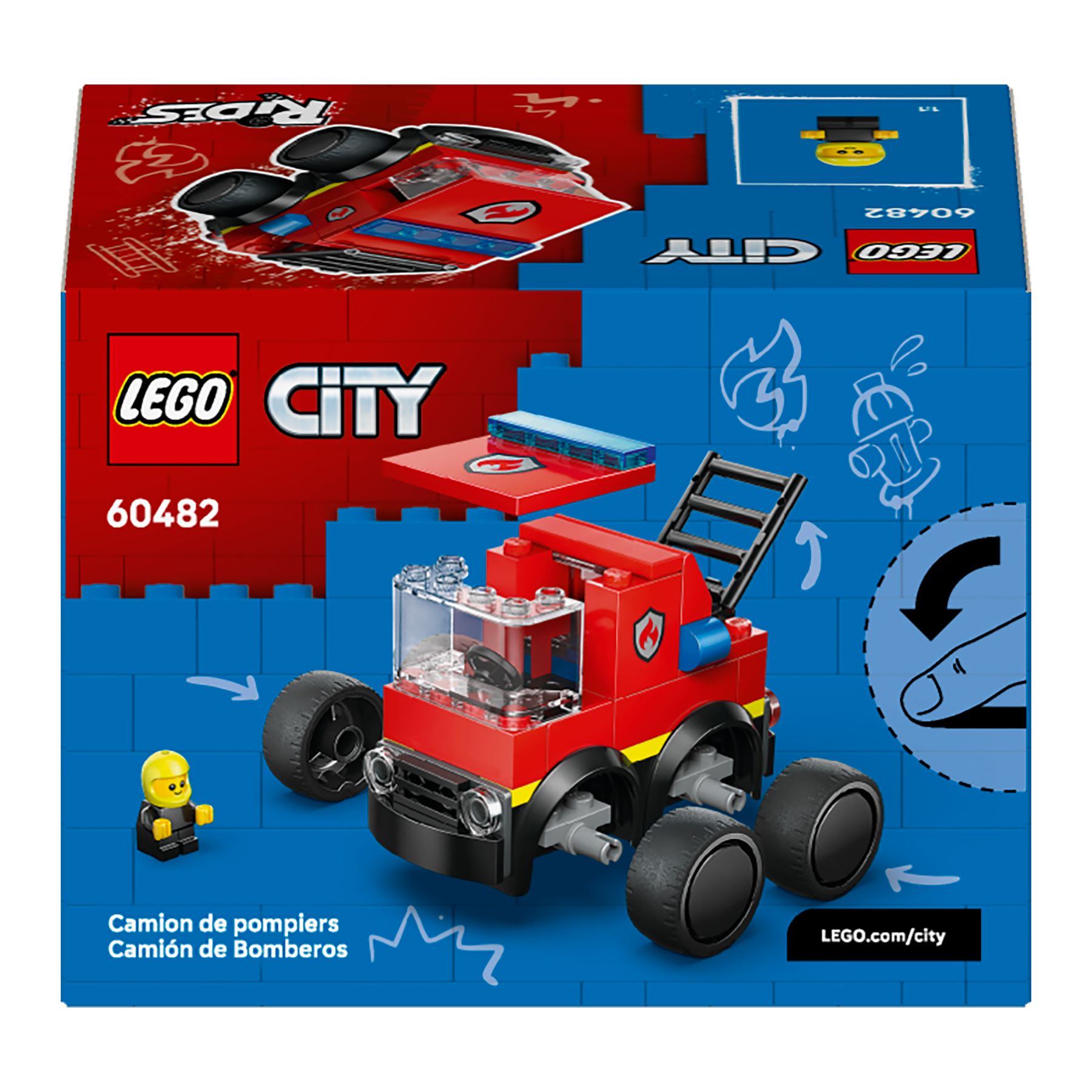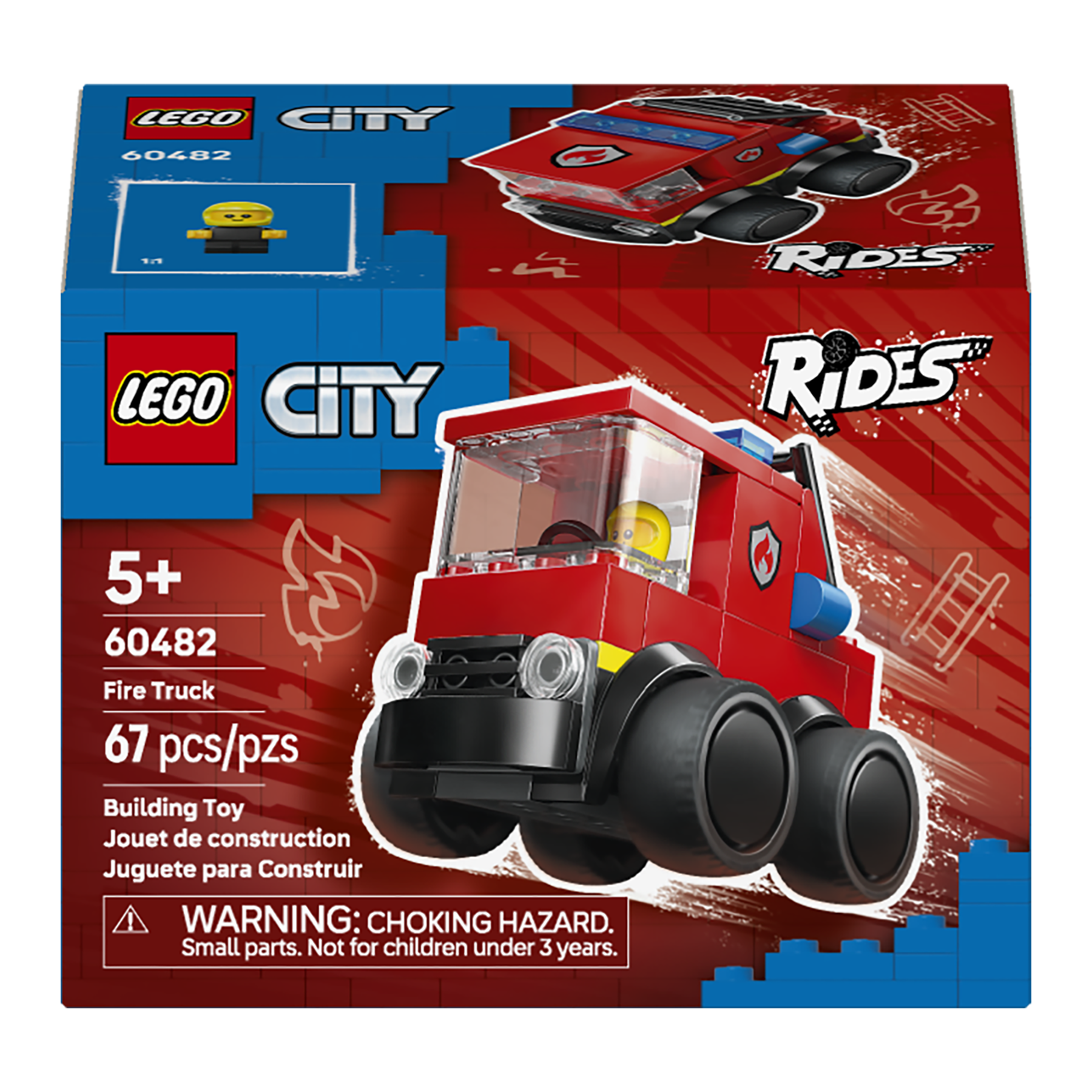 Spark fun firefighting adventures with the LEGO® City Rides – Fire Truck (60482) mini building kit for kids aged 5 and up. This pocket-sized, buildable toy truck is a great introduction to the creative world of LEGO City and comes with features kids will love, including chunky rubber tires and a raisable fire ladder. The set includes a LEGO City Rides firefighter junior minifigure that fits perfectly in the driver cab for pretend play.
