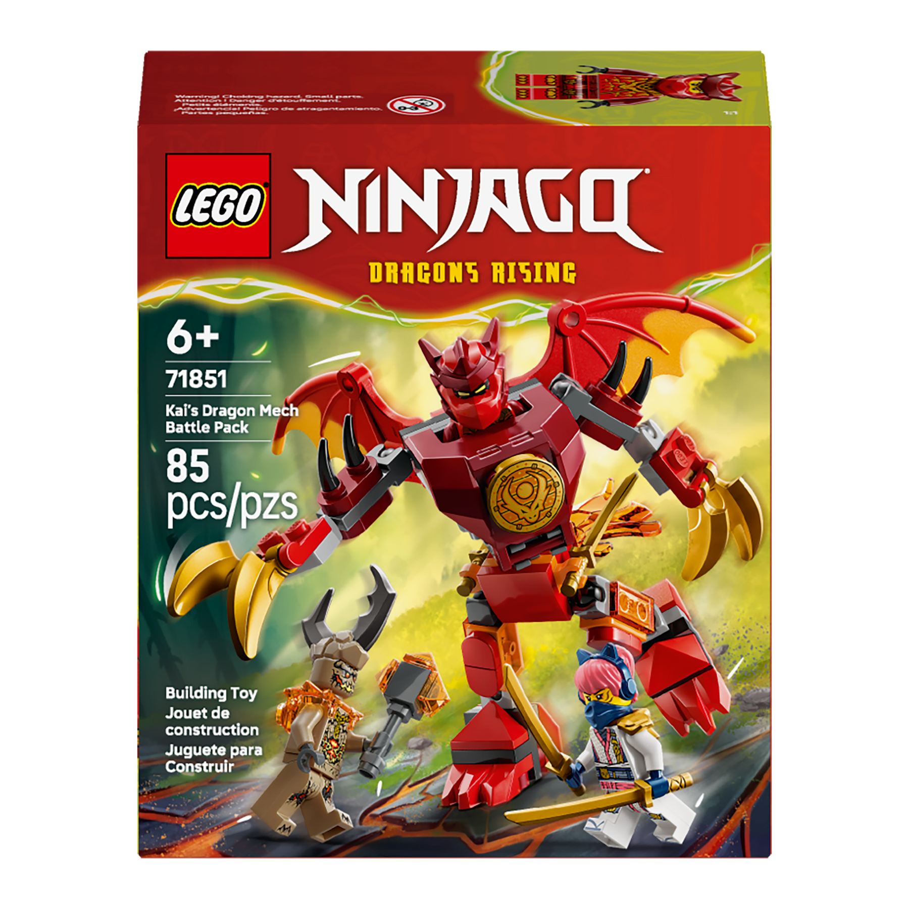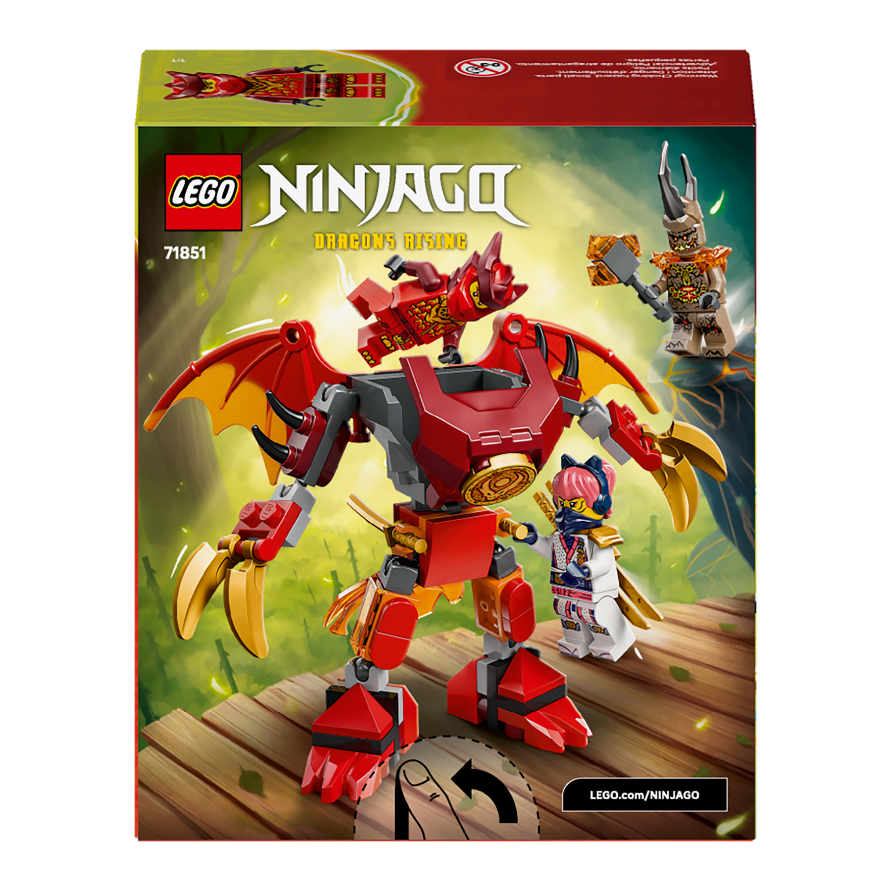 Boys, girls and fans of the NINJAGO® Dragons Rising TV show ages 6 and up can enjoy hours of imaginative play with the LEGO® NINJAGO Kai’s Dragon Mech Battle Pack (71851) building set. This playset features a dragon mech toy with posable legs, large wings, claw hands and an upper body that rotates 360 degrees, plus a cockpit to place a minifigure inside.